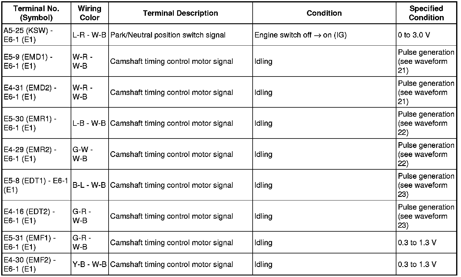 Camshaft Timing Control Motor EMR Signal