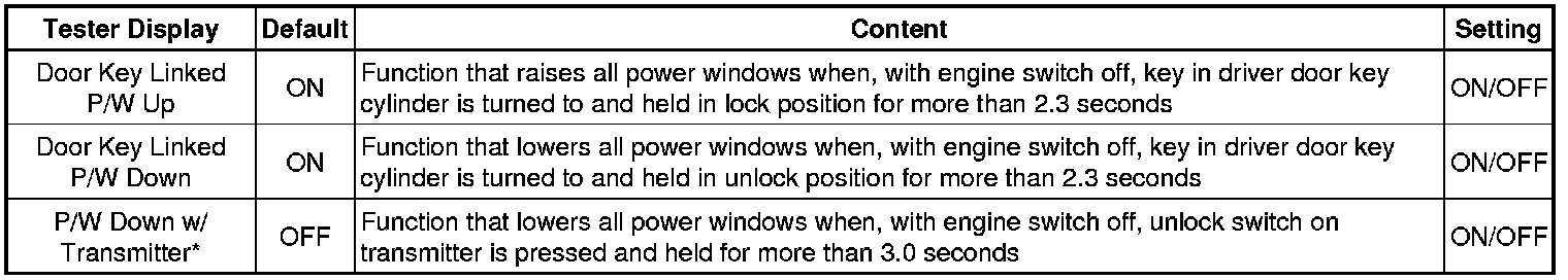Home >> Lexus >> 2011 >> IS F V8-5.0L (2UR-GSE) >> Repair and Diagnosis >> Windows and Glass >> Windows >> Testing and Inspection >> Programming and Relearning >> Customize Parameters