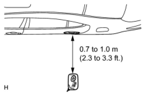 (g) Bring the electrical key transmitter near the indoor electrical key oscillator (in rear seat cushion), and perform an engine start check.