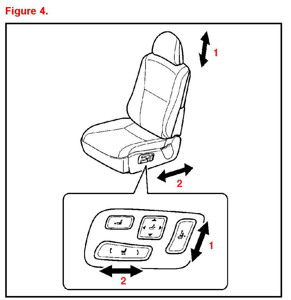7. Operate the seat position control switch and check that the seat slides forward and rearward and that the beep is NOT heard. (Refer to 2 in figure 4.)