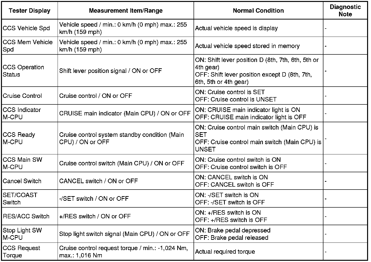 CRUISE CONTROL: CRUISE CONTROL SYSTEM: DATA LIST / ACTIVE TEST