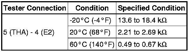 If the result is not as specified, replace the mass air flow meter sub-assembly.
