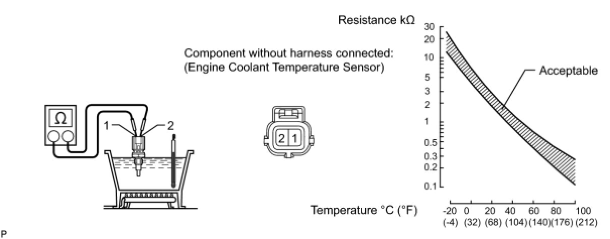 If the result is not as specified, replace the engine coolant temperature sensor.