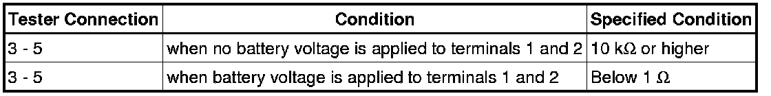 If the result is not as specified, replace the relay.