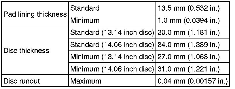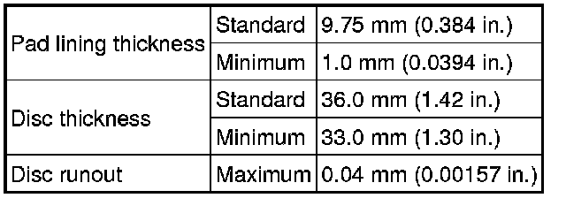 SERVICE SPECIFICATIONS: BRAKE: SERVICE DATA