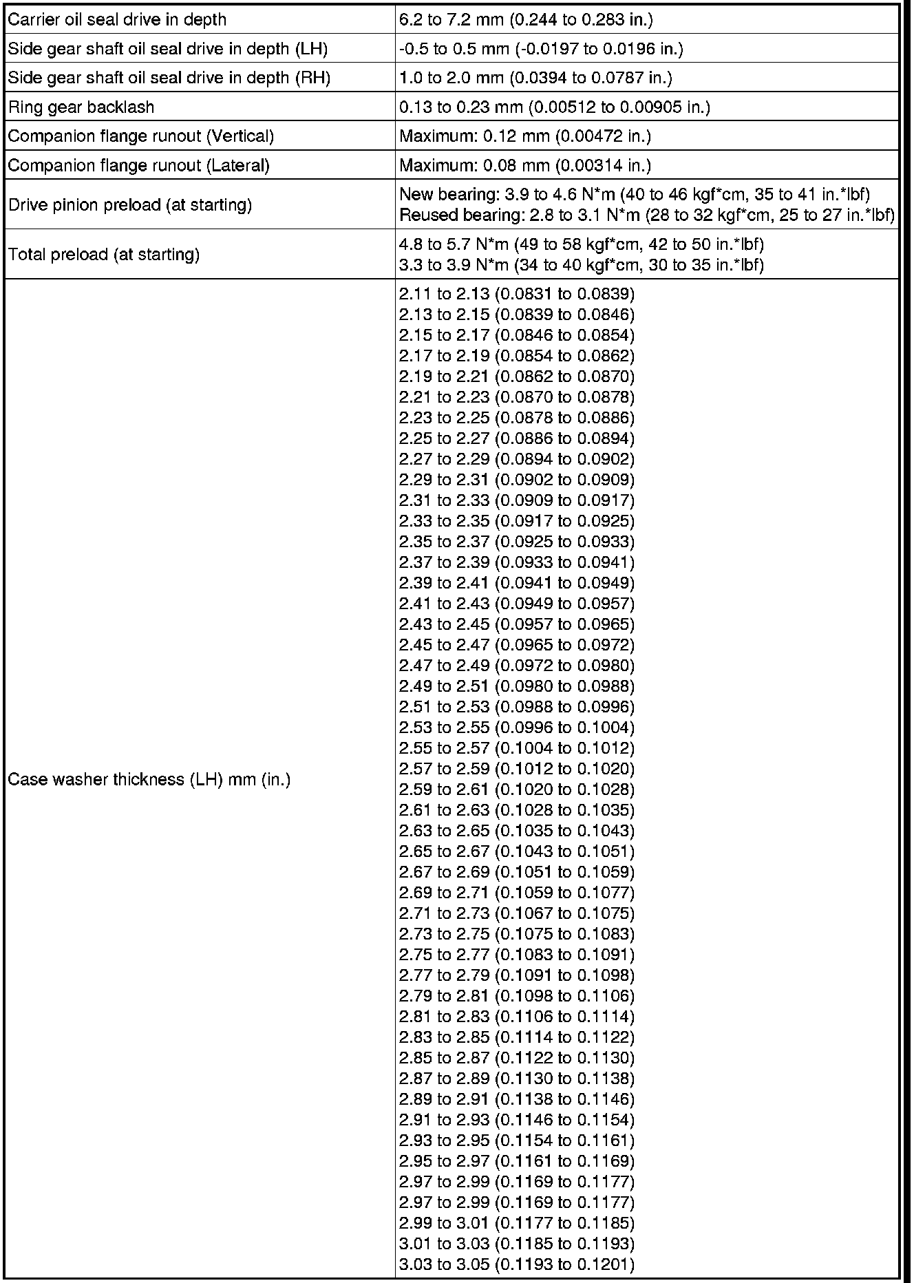 SERVICE SPECIFICATIONS: DIFFERENTIAL: SERVICE DATA