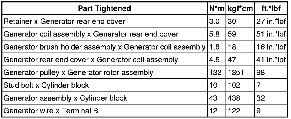 SERVICE SPECIFICATIONS: 1UR-FSE CHARGING: TORQUE SPECIFICATIONS