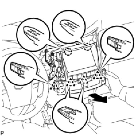 (b) Pull the radio receiver to detach the 2 claws and 4 clips on the backside of the display.