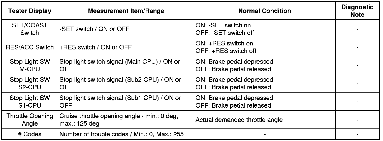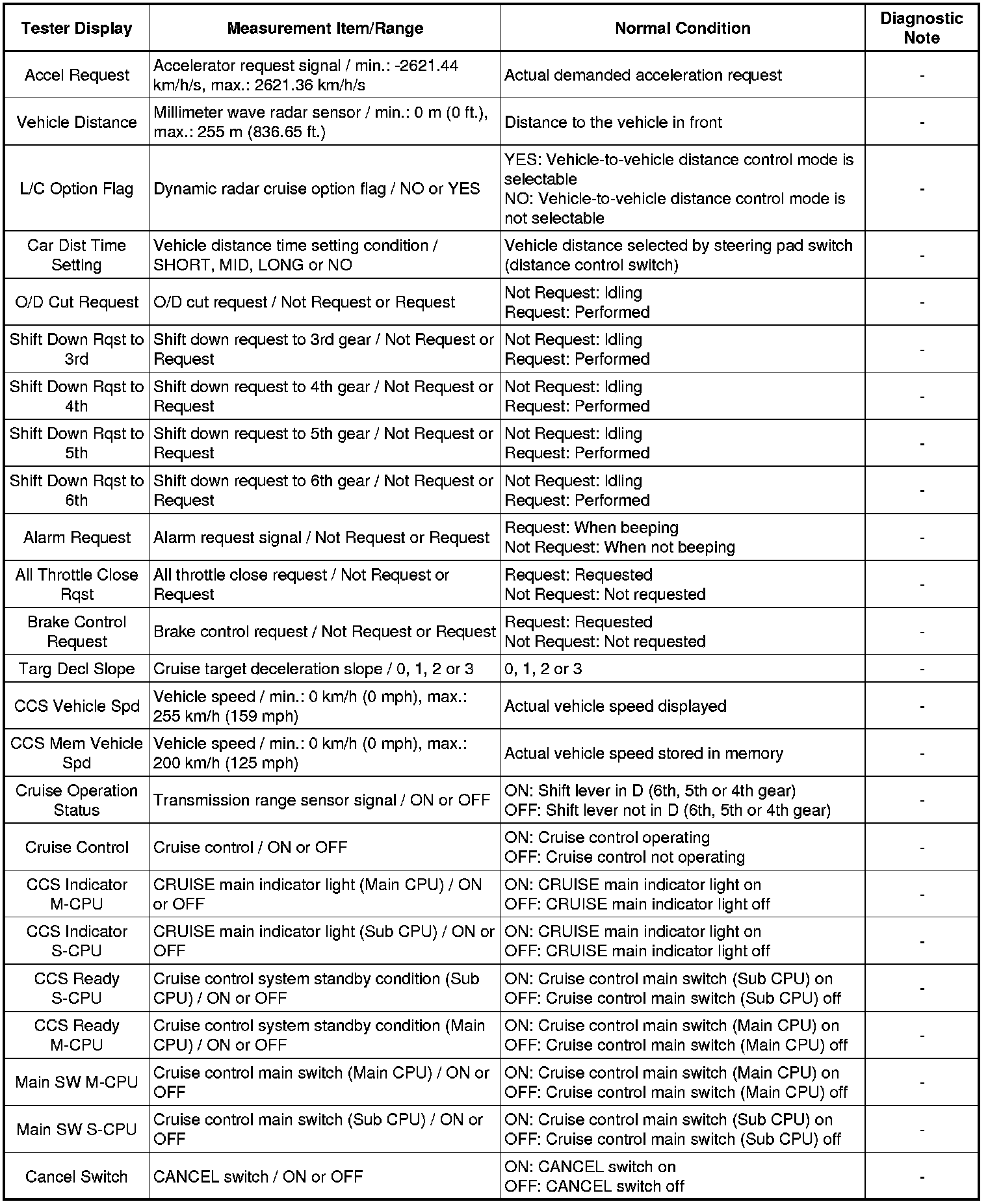 (d) Enter the following menus: Powertrain / Radar Cruise / Data List.