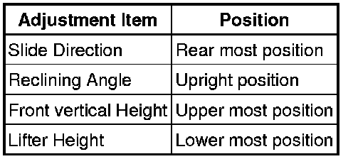 (2) Adjust the seat position according to the table below.