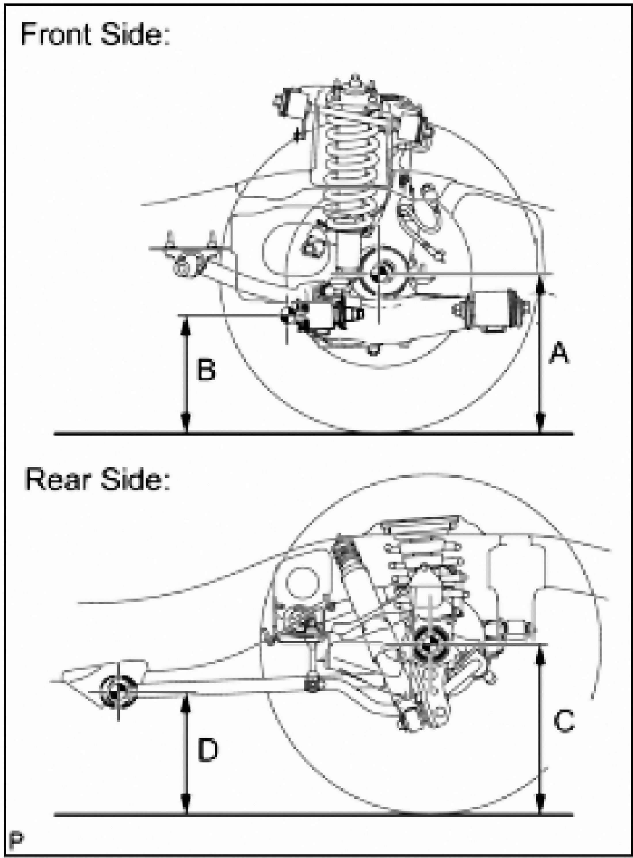 D: Ground clearance of the rear lower control arm front side center