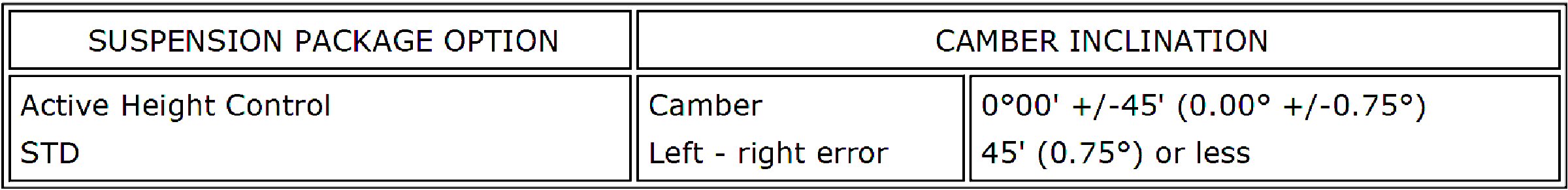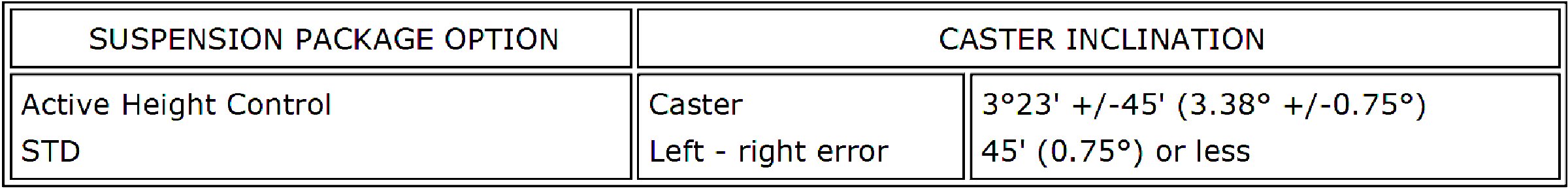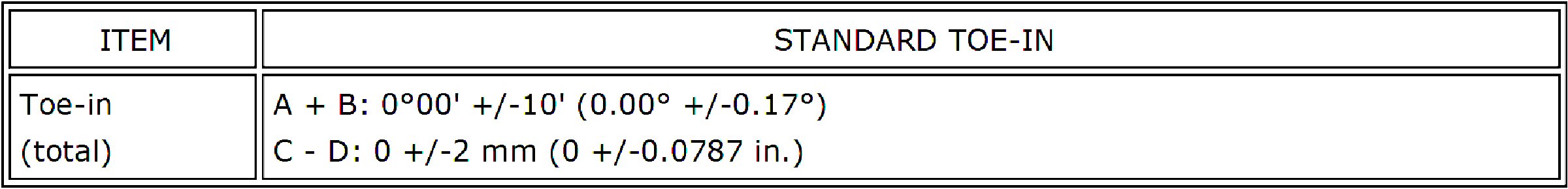 Wheel Alignment Specifications