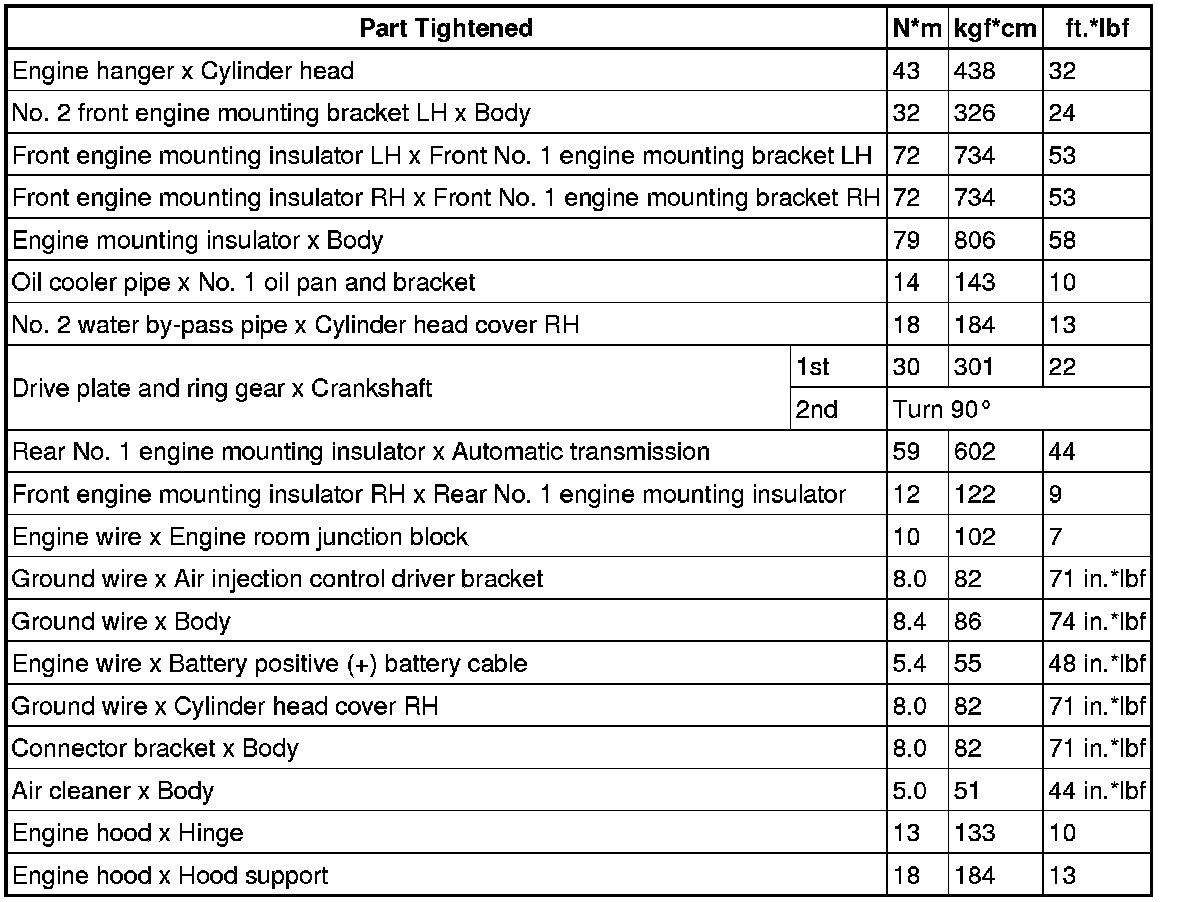 SPECIFICATIONS: 3UR-FE ENGINE MECHANICAL: TORQUE SPECIFICATIONS