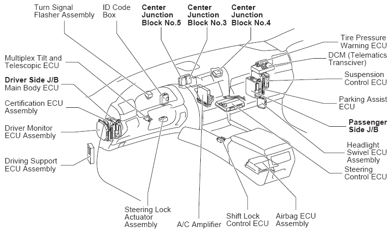 DRIVER SIDE J/B FUSE IDENTIFICATION LEGEND