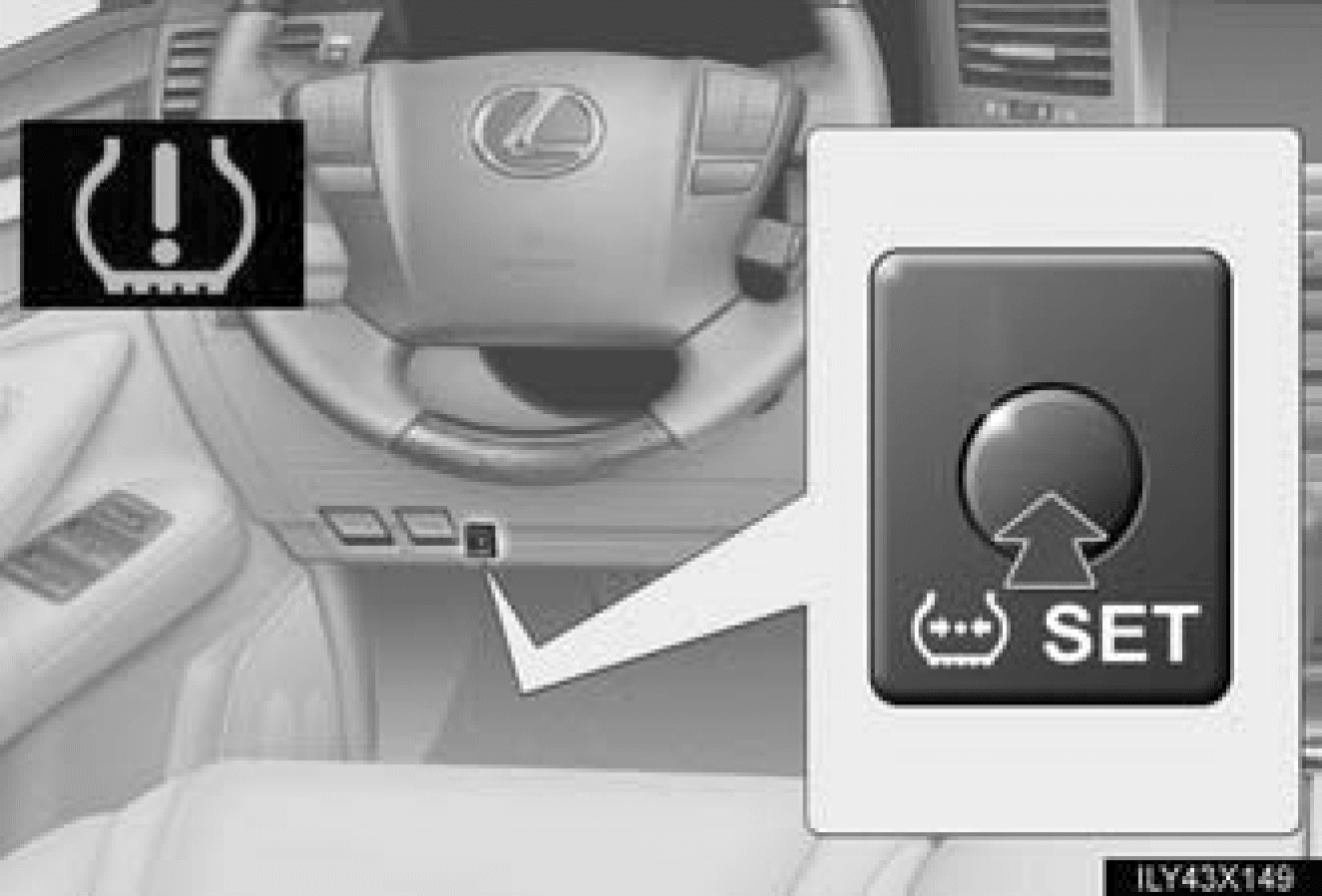 3. Press and hold the tire pressure warning reset switch until the tire pressure warning light blinks 3 times at one-second intervals. See Fig 1