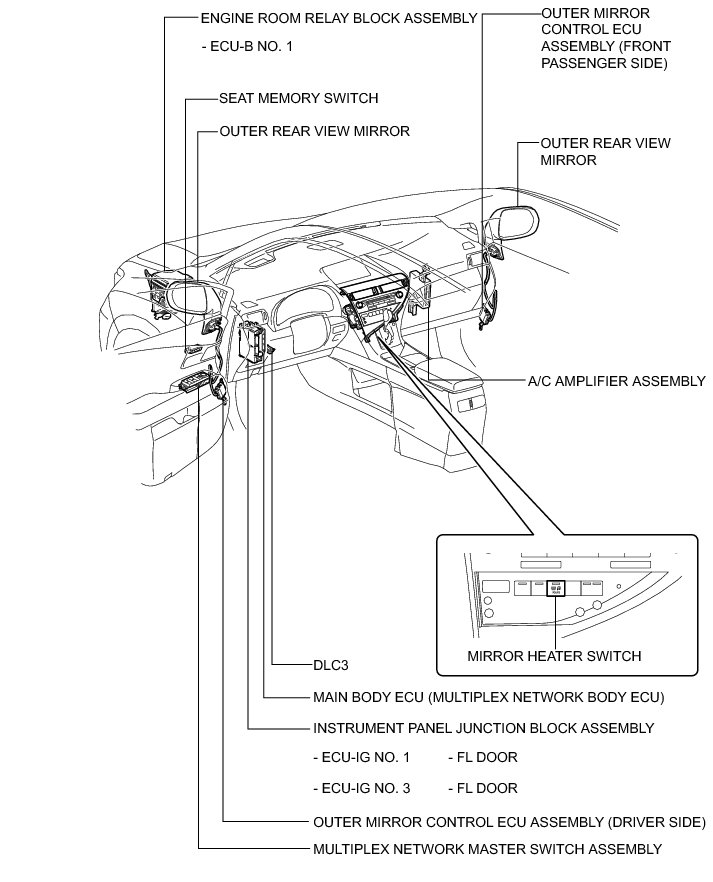 MIRROR (EXT): POWER MIRROR CONTROL SYSTEM: PARTS LOCATION