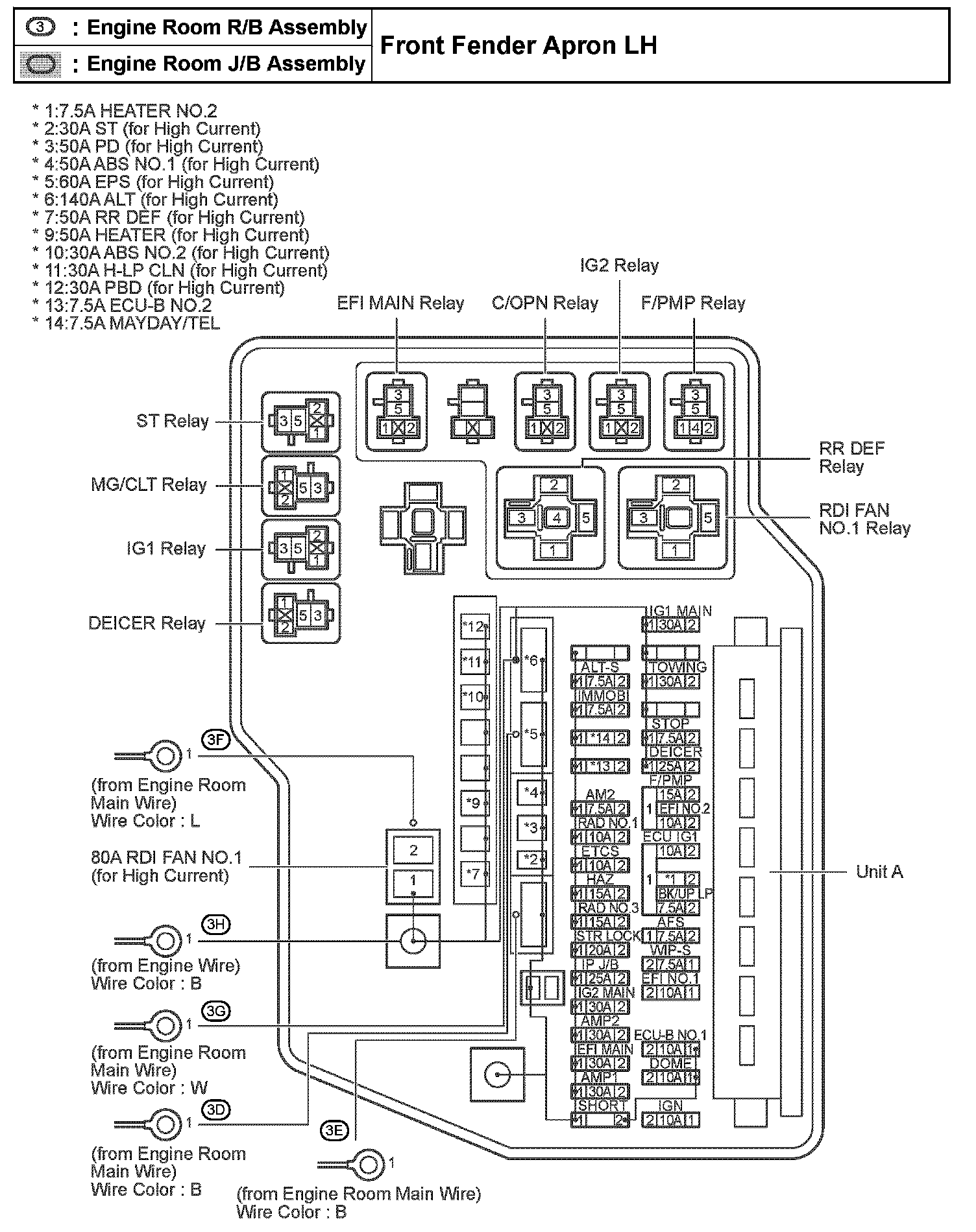 Engine Room R/B Assembly, Engine Room J/B Assembly - Front Fender Apron LH: