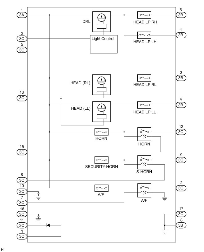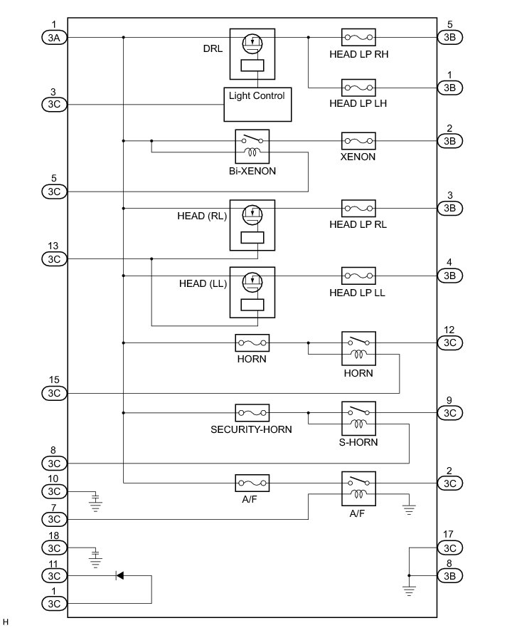 (b) Inner circuit (w/ Automatic Type Headlight Beam Level Control)