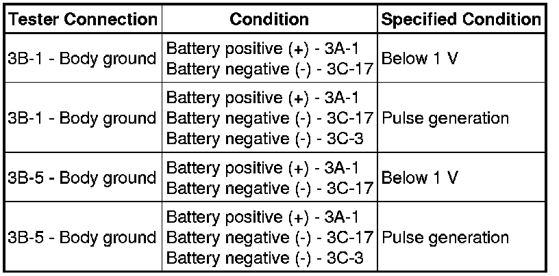 Measure the voltage and check for pulses according to the value(s) in the table below.