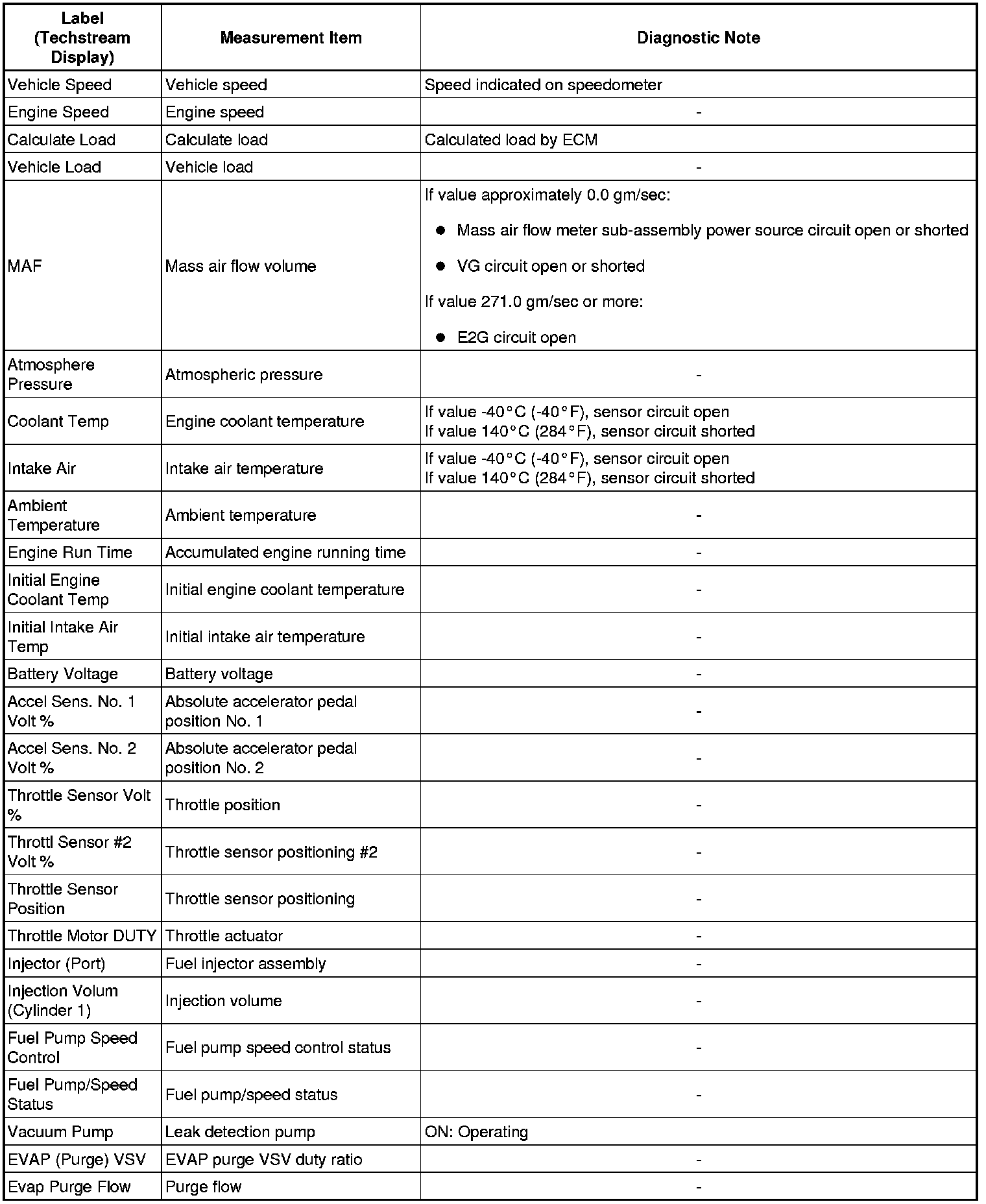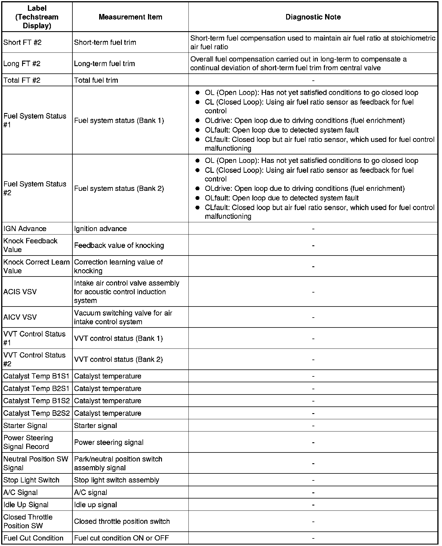 2GR-FE ENGINE CONTROL: SFI SYSTEM: FREEZE FRAME DATA