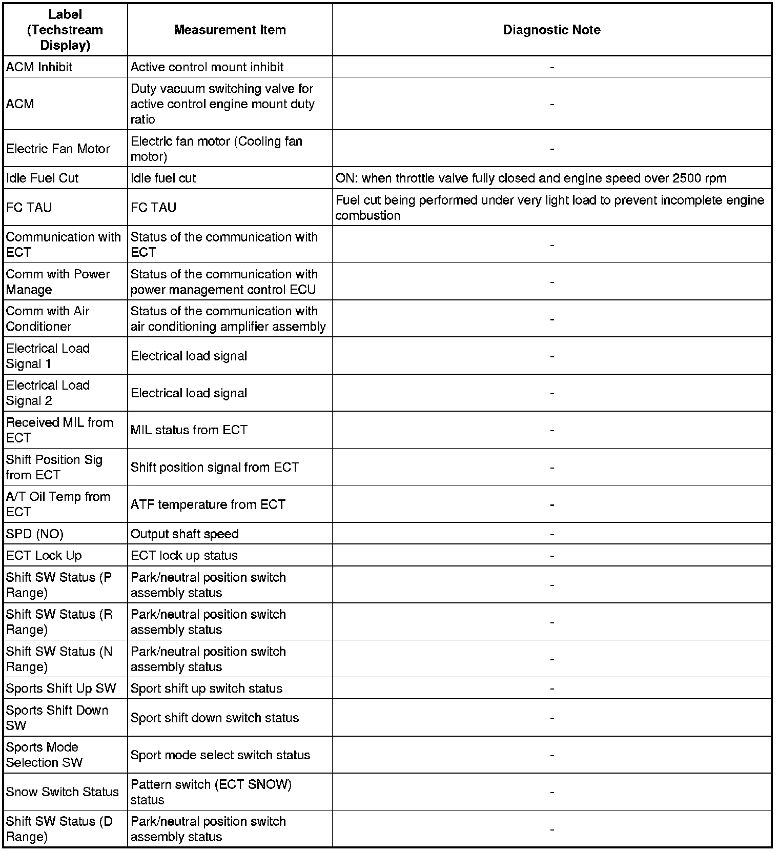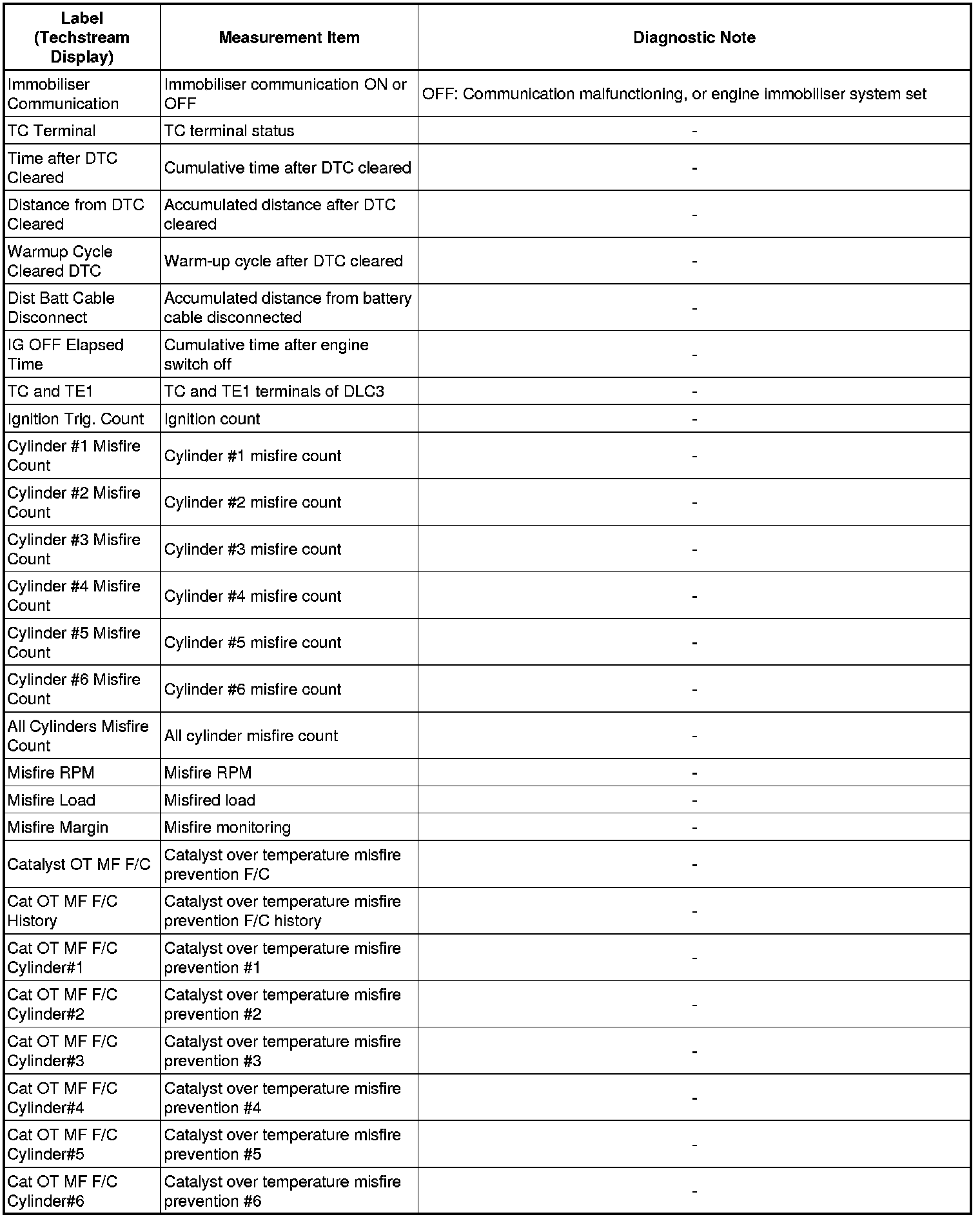 The ECM records engine conditions in the form of freeze frame data every 0.5 seconds. Using the Techstream, 5 separate sets of freeze frame data, including the data values at the time when the DTC was set, can be checked.