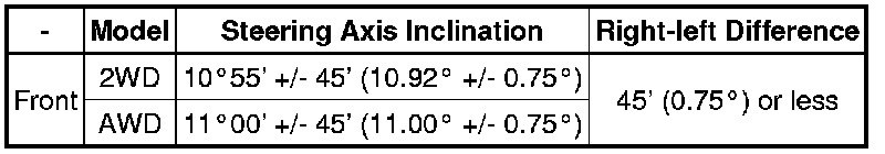 Steering Axis Inclination (Unloaded Vehicle)