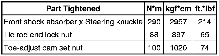 SPECIFICATIONS: ALIGNMENT / HANDLING DIAGNOSIS: TORQUE SPECIFICATIONS