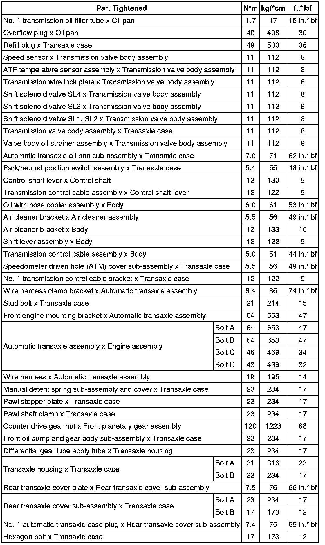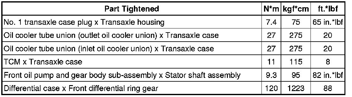 SPECIFICATIONS: U660F AUTOMATIC TRANSMISSION / TRANSAXLE: TORQUE SPECIFICATIONS