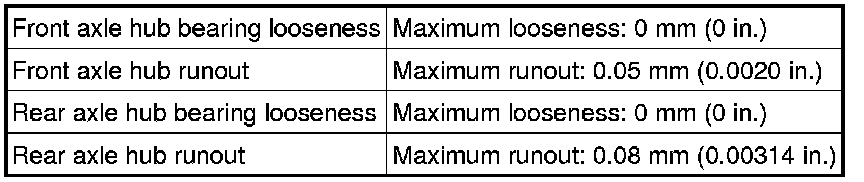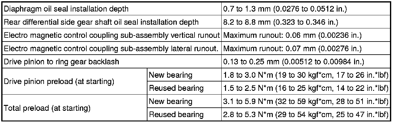 SPECIFICATIONS: AXLE AND DIFFERENTIAL: SERVICE DATA