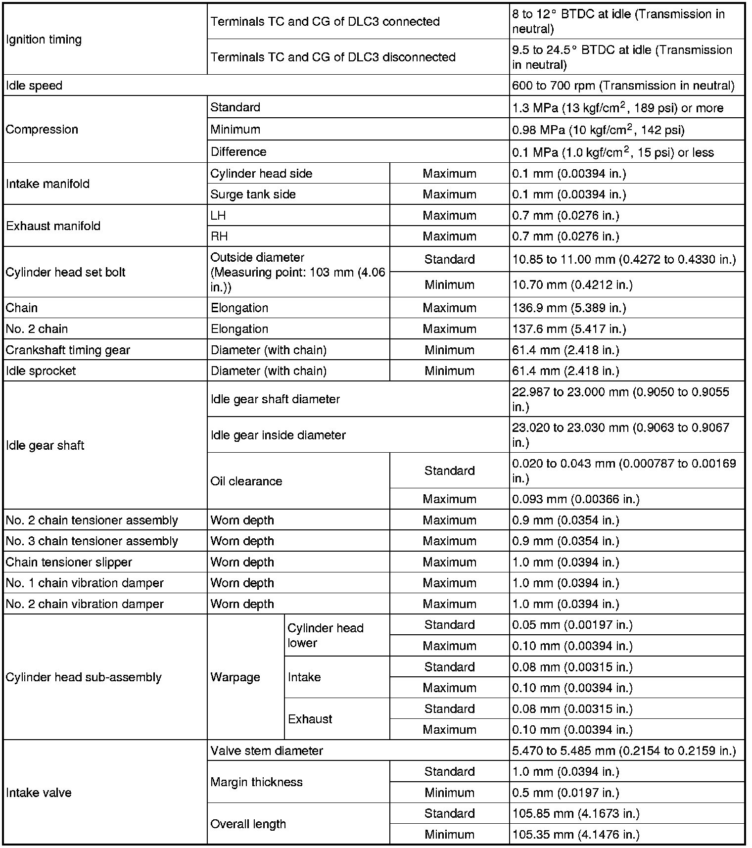 SPECIFICATIONS: 2GR-FE ENGINE MECHANICAL: SERVICE DATA