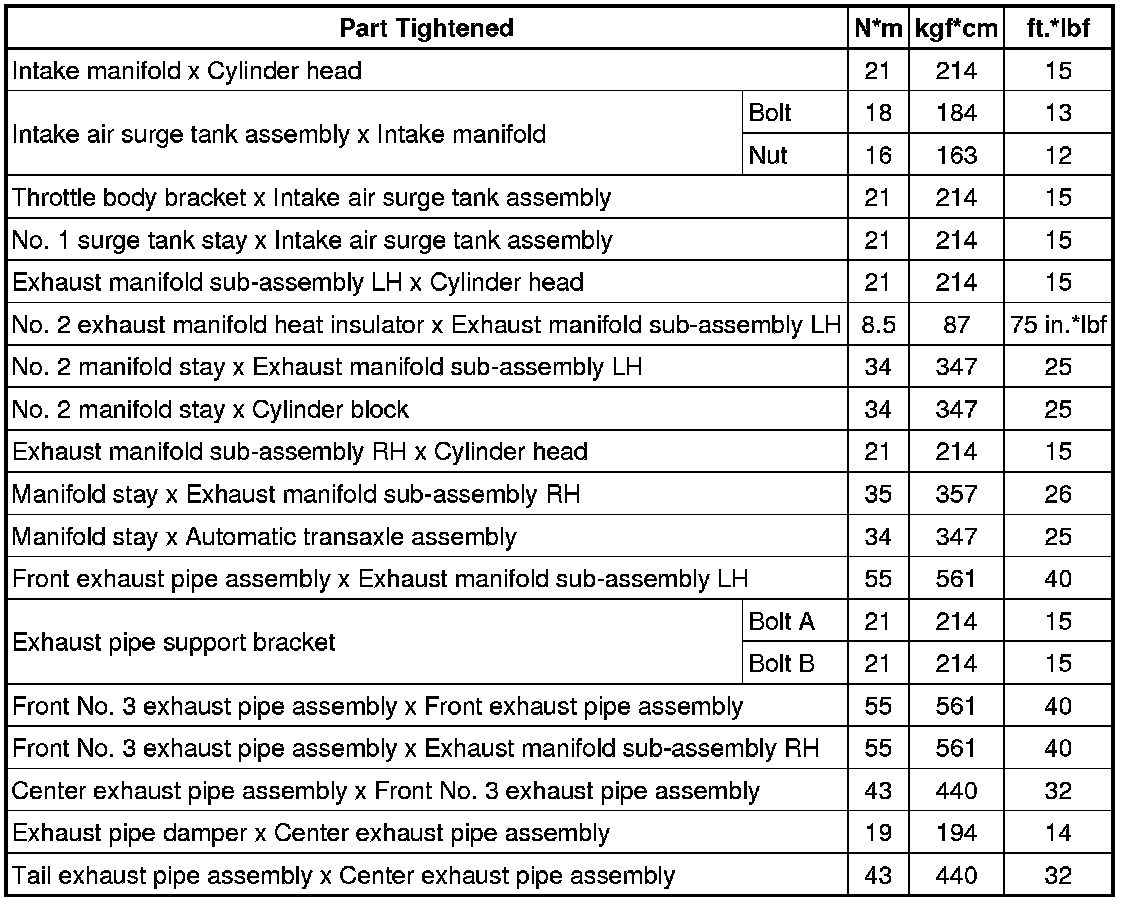 SPECIFICATIONS: 2GR-FE INTAKE / EXHAUST: TORQUE SPECIFICATIONS