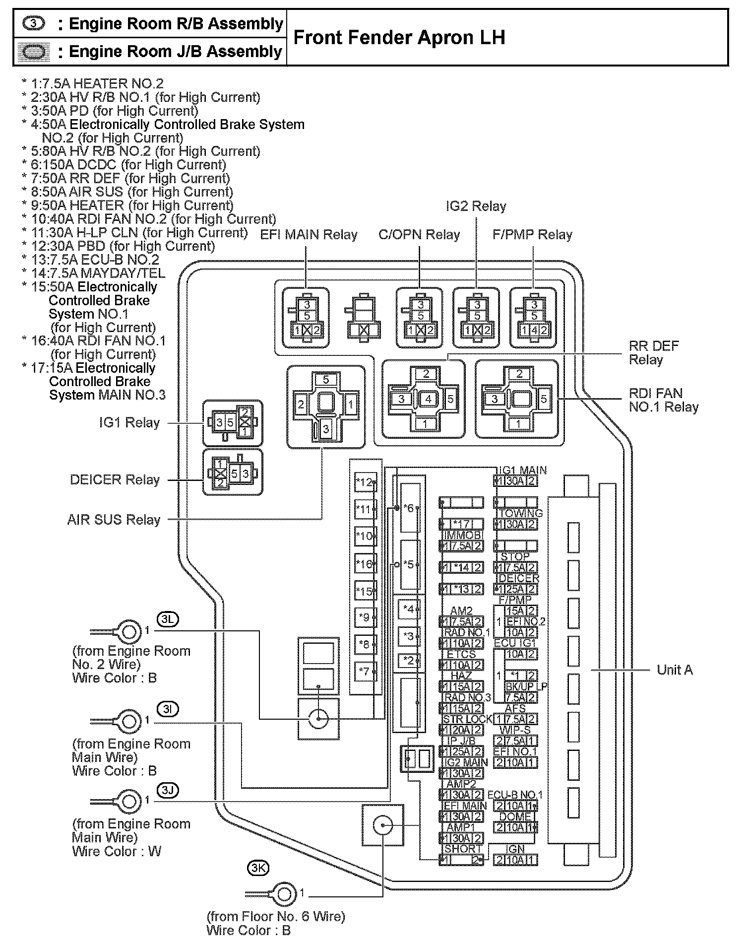 Engine Room R/B Assembly, Engine Room J/B Assembly - Front Fender Apron LH: