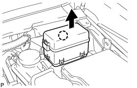 (a) Disengage the 2 claws and pull up the engine room junction block assembly as shown in the illustration.