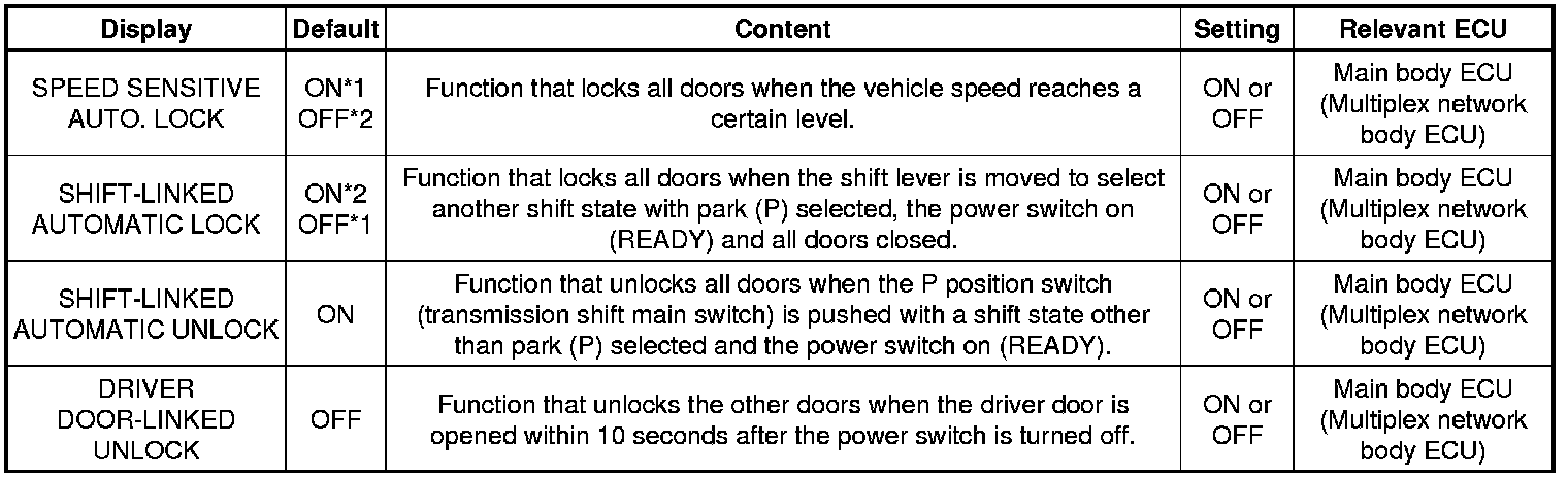 DOOR LOCK: POWER DOOR LOCK CONTROL SYSTEM: CUSTOMIZE PARAMETERS