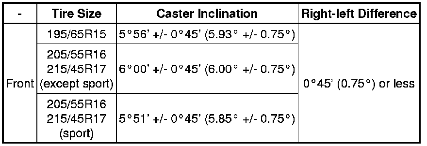 SPECIFICATIONS: ALIGNMENT / HANDLING DIAGNOSIS: SERVICE DATA