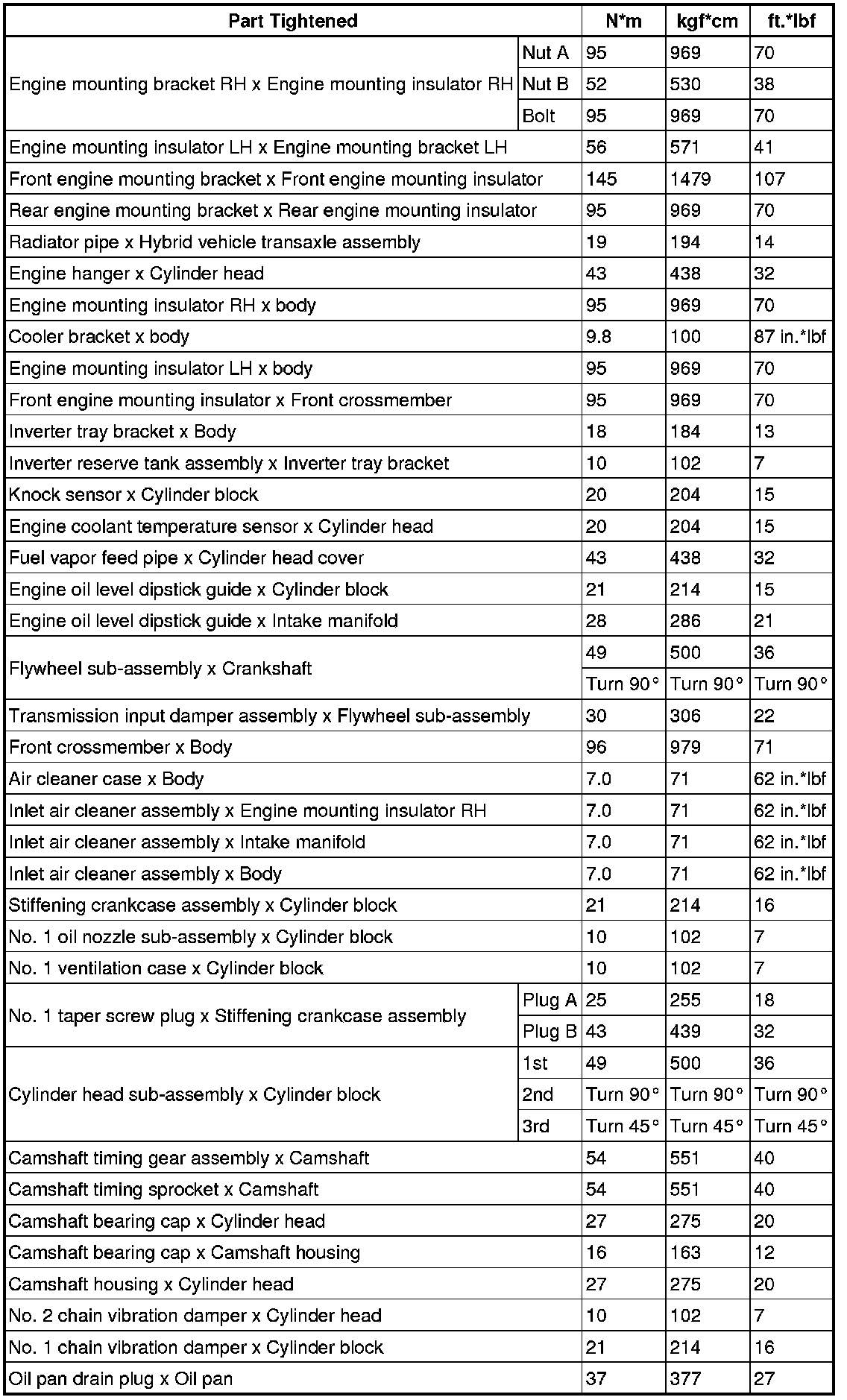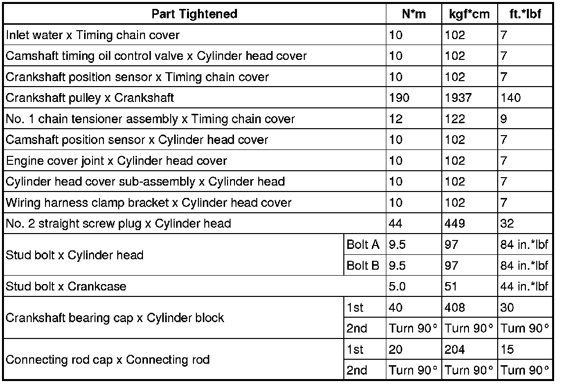 SPECIFICATIONS: 2ZR-FXE ENGINE MECHANICAL: TORQUE SPECIFICATIONS
