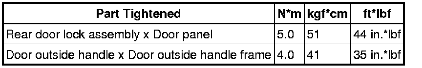 SERVICE SPECIFICATIONS: DOOR LOCK: TORQUE SPECIFICATIONS