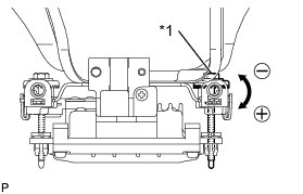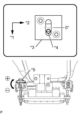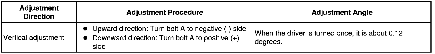 * If "LEFT SIDE: 1.0°" is displayed, the divergence is 1.0° in the left direction. Turn the bolt B approximately 2.5 turns to the negative (-) side.