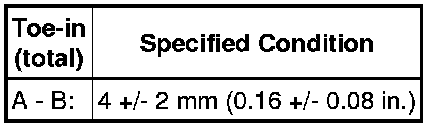 If the toe-in is not within the specified range, inspect the suspension parts and replace them if necessary.