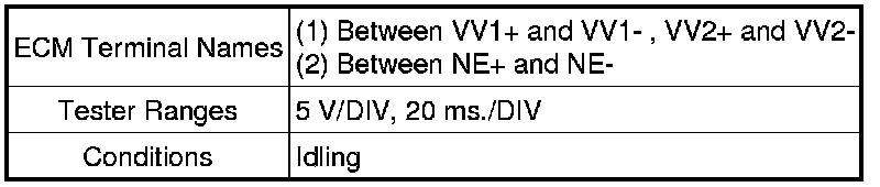 (1) Variable Valve Timing (VVT) sensor signal for exhaust camshaft