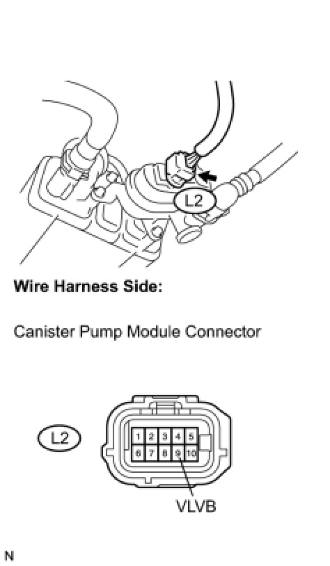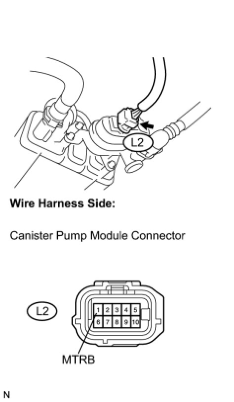 (b) Disconnect the L2 canister pump module connector.