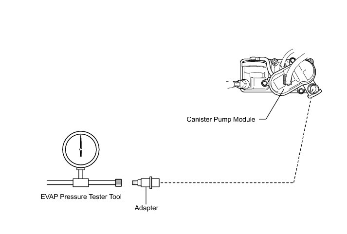 (b) Connect the EVAP pressure tester tool to the canister pump module with the adapter.