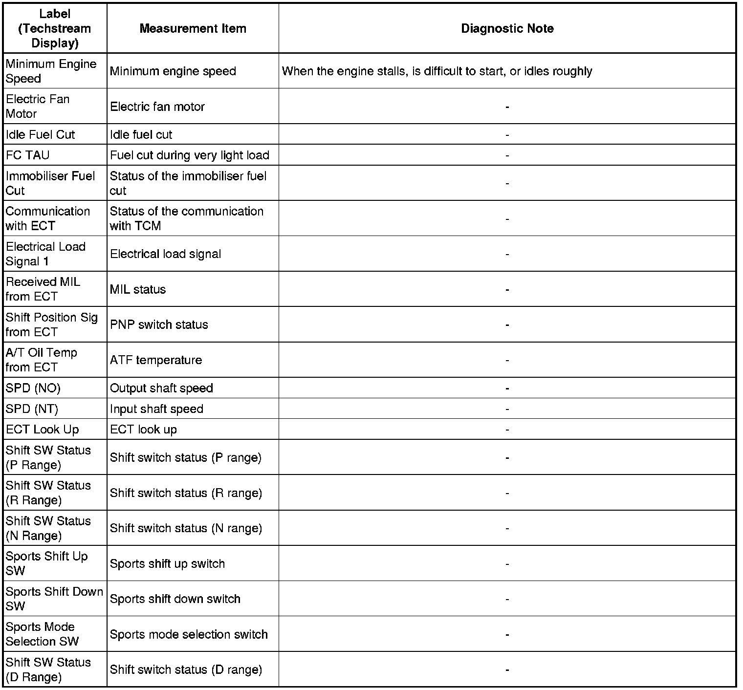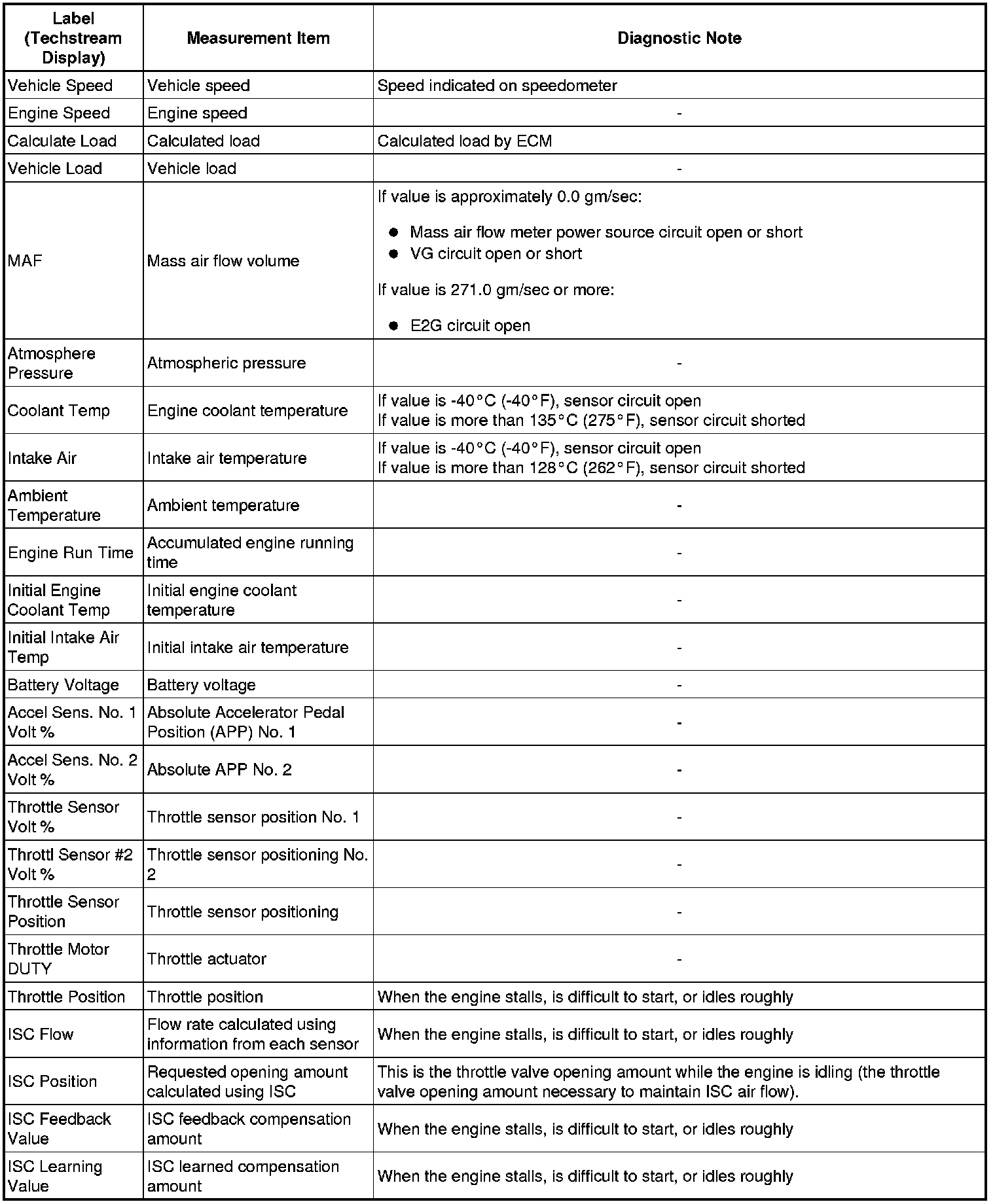 * The ECM records vehicle and driving condition information as freeze frame data the moment a DTC is stored. When troubleshooting, freeze frame data can be helpful in determining whether the vehicle was running or stopped, whether the engine was warmed up or not, whether the air-fuel ratio was lean or rich, as well as other data recorded at the time of a malfunction.