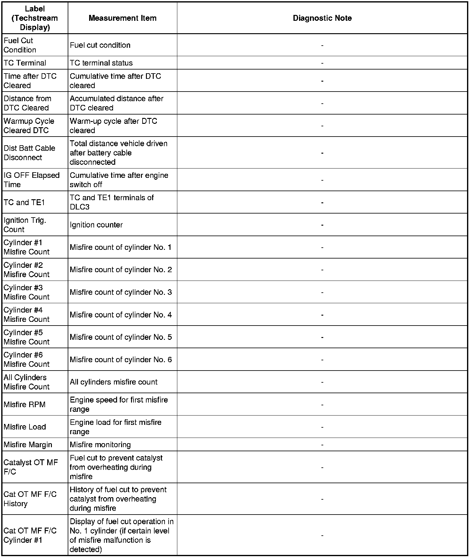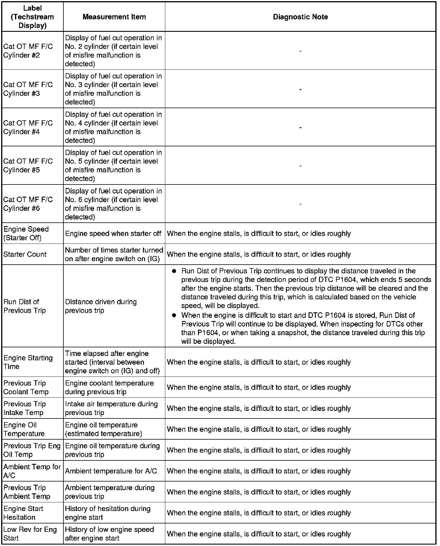 * These data sets can be used to duplicate the condition of the vehicle around the time of the occurrence of the malfunction. The data may assist in identifying of the cause of the malfunction, and in judging whether it was temporary or not.