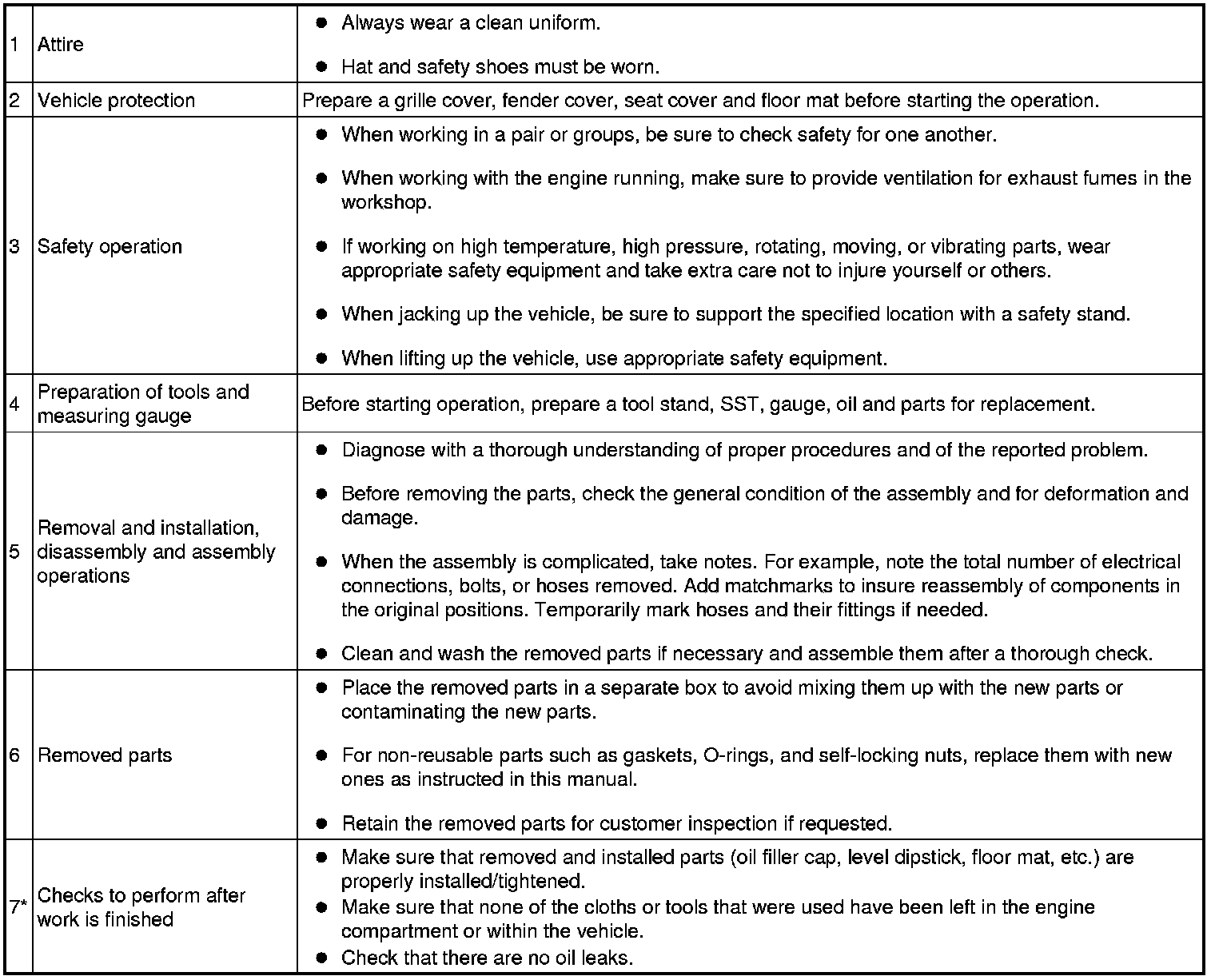 * Failure to carry out the service operations in the correct sequence could cause the SRS to unexpectedly deploy during servicing and lead to serious injury. Furthermore, if a mistake is made when servicing SRS, it is possible that the SRS may fail to operate properly. Before servicing (including removal or installation of parts, inspection or replacement), be sure to read the following section carefully.