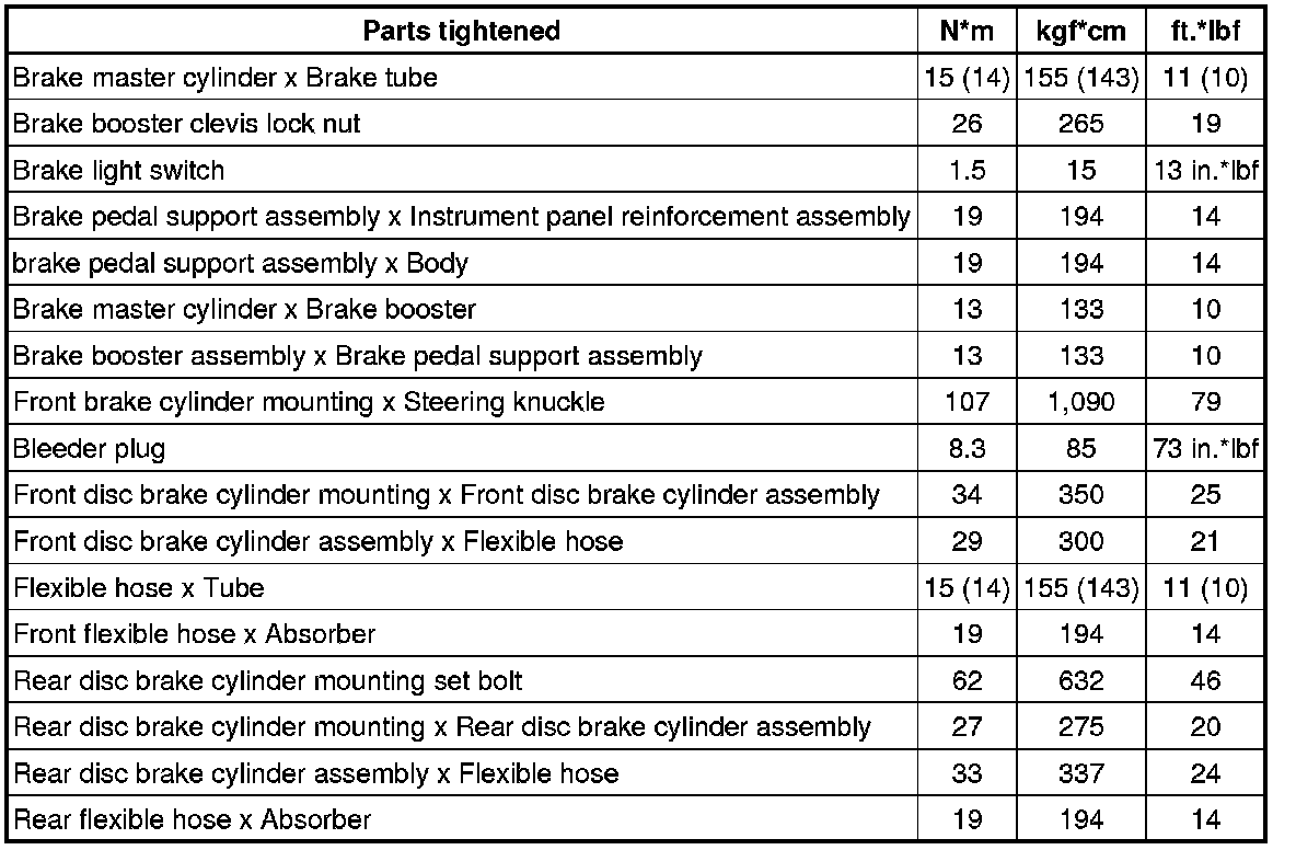 SERVICE SPECIFICATIONS: BRAKE: TORQUE SPECIFICATIONS