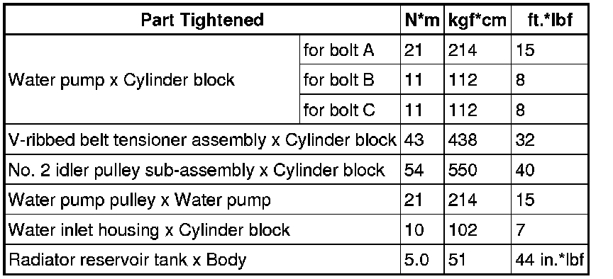 SERVICE SPECIFICATIONS: 2GR-FE COOLING: TORQUE SPECIFICATIONS