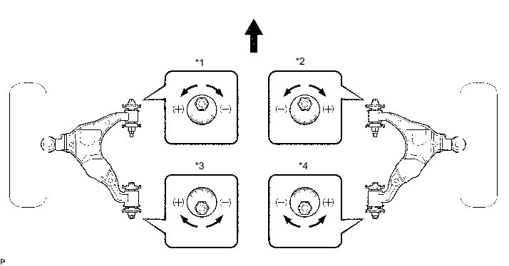 (b) Turn the front adjusting cam and rear adjusting cam in both directions, and adjust the camber and caster to the center value.