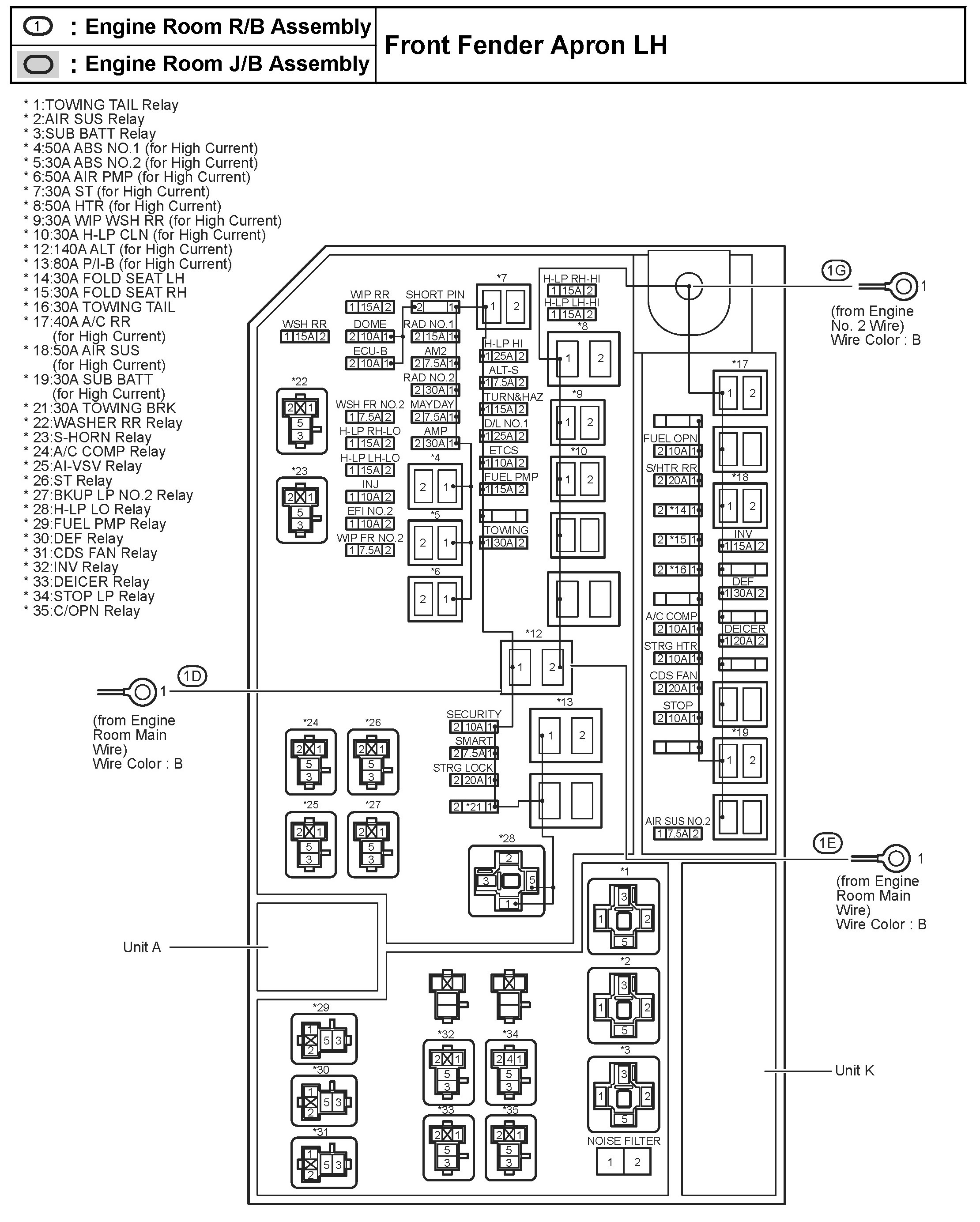 24 - Engine Room R/B Assembly, Engine Room J/B Assembly - Front Fender Apron LH: