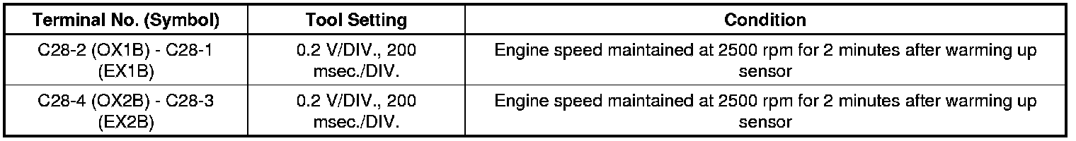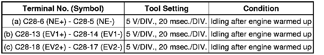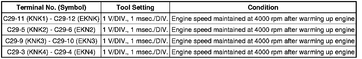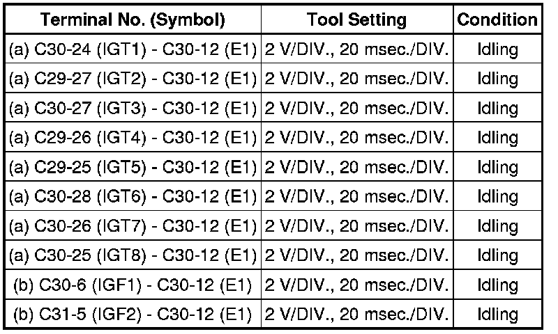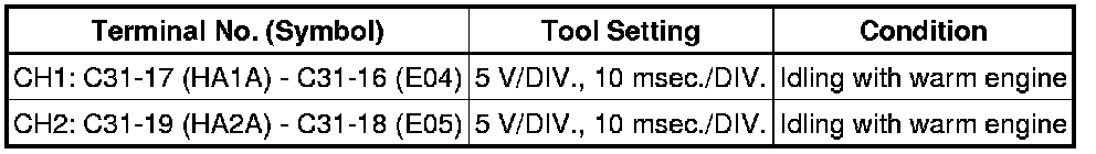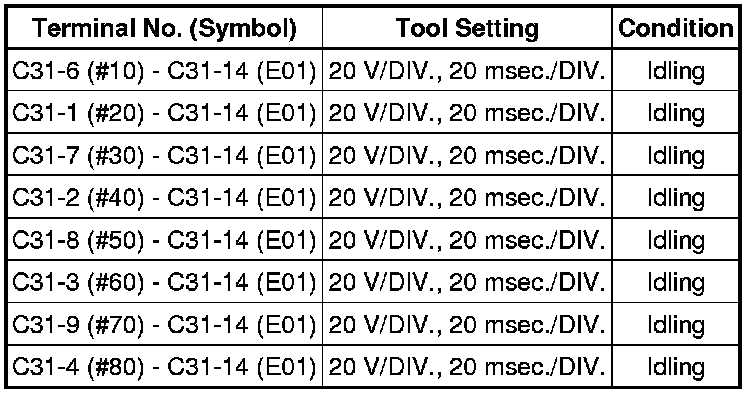 If the waveform is not similar to the illustration, check the waveform again after idling for 10 minutes or more.